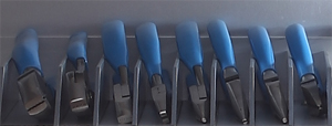 Pliers and cutters are stored in individual trays near the top of the toolbox. This makes each tool clearly identifiable. Trays are of a carefully selected shape and size to make pliers easily accessible.